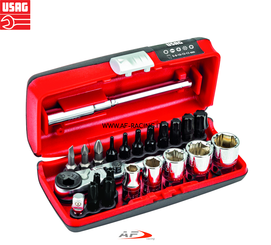 SET USAG MINI KIT CON CRICCHETTO E INSERTI BRUGOLE ESAGONALI, TORX , GIRAVITI PER USO RIBASSATO 31 PZ