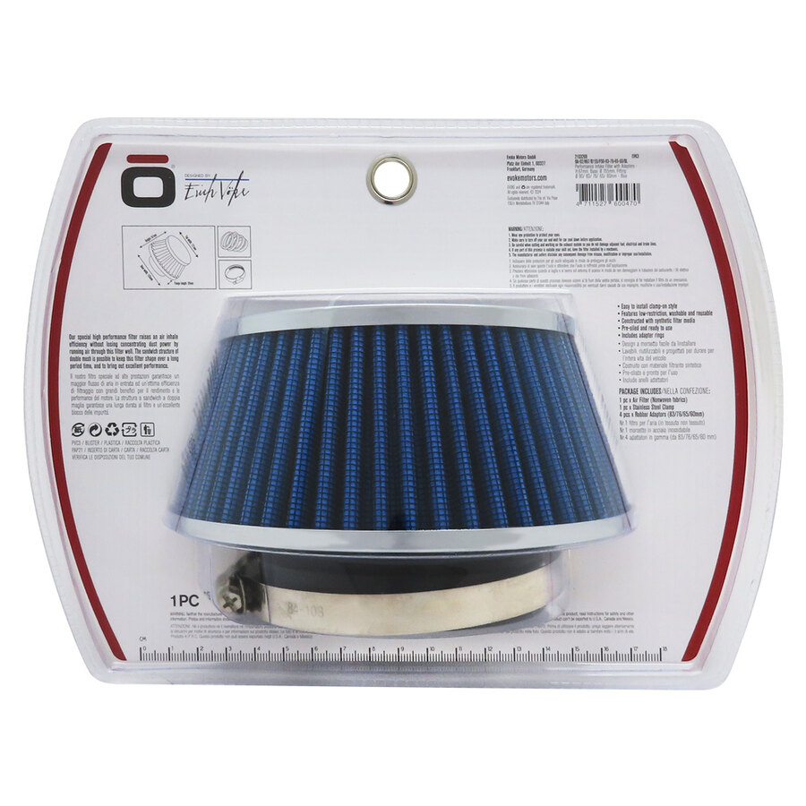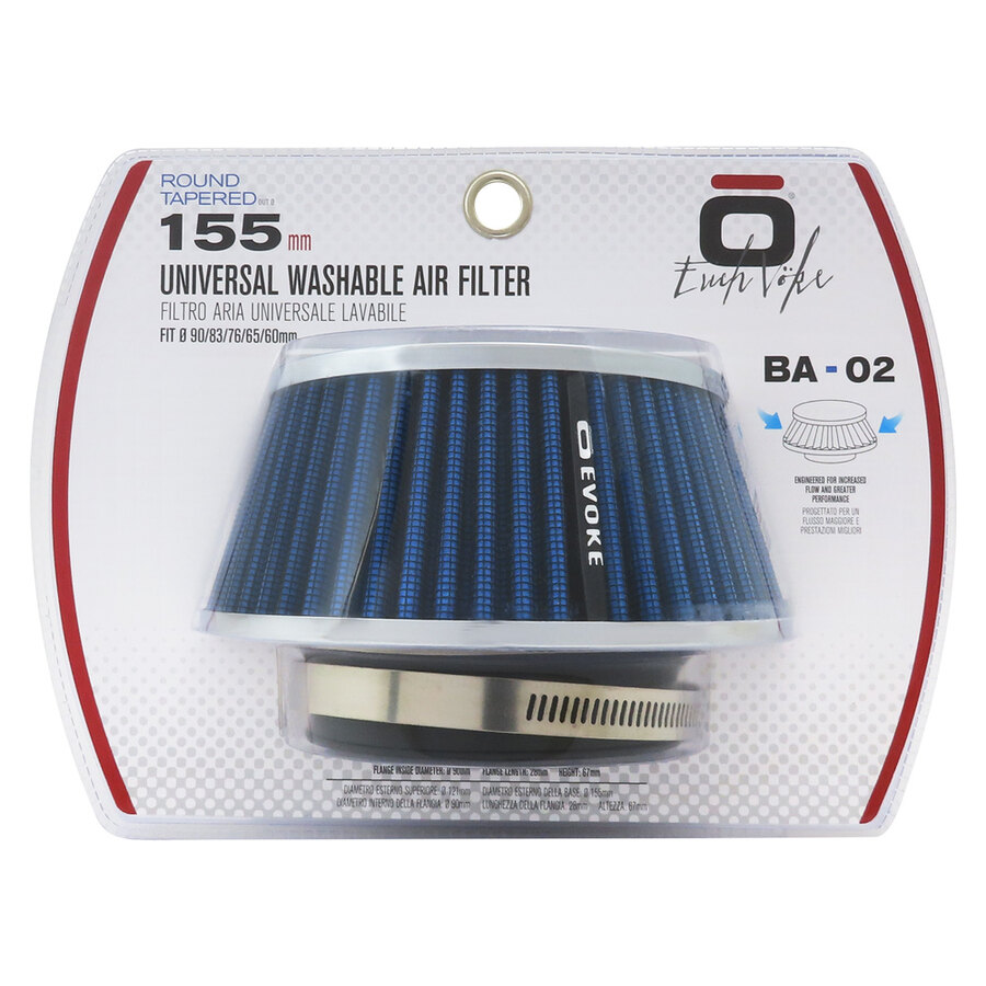FILTRO ARIA A CONO BLU ASPIRAZIONE DIRETTA EVOKE IMBOCCO 90/83/76/65/60mm