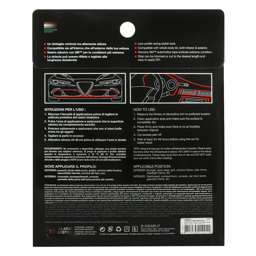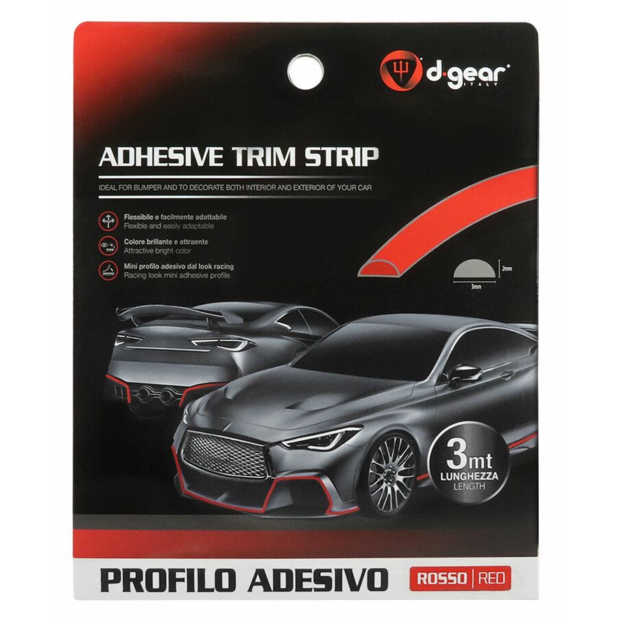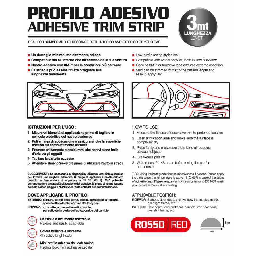 PROFILO ADESIVO ROSSO PER PARAURTI AUTO O CARENE MOTO INTERNI STRISCIA ROSSA ADESIVA 3D