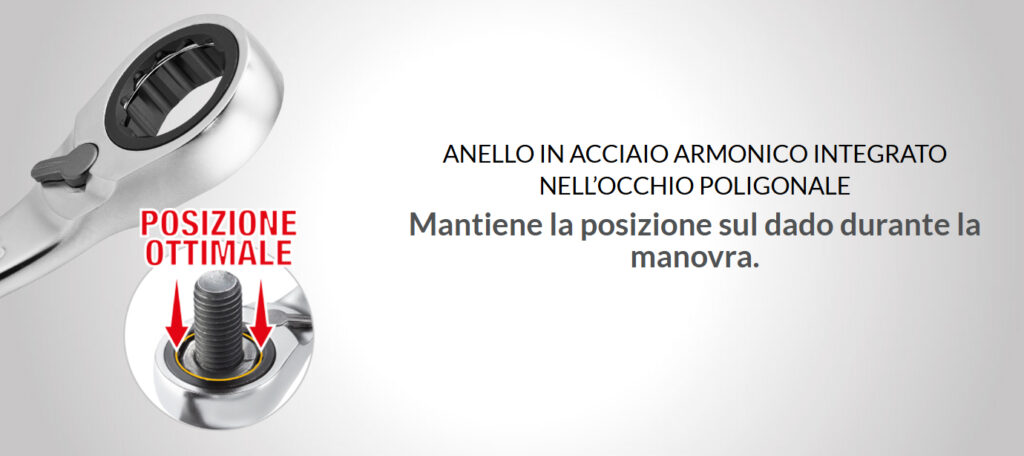 Anello in acciaio integrato nell’occhio poligonale per la tenuta del dado durante la manovra